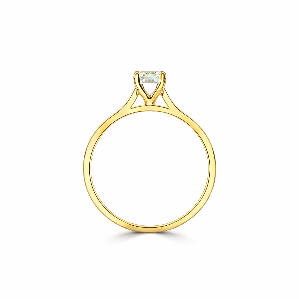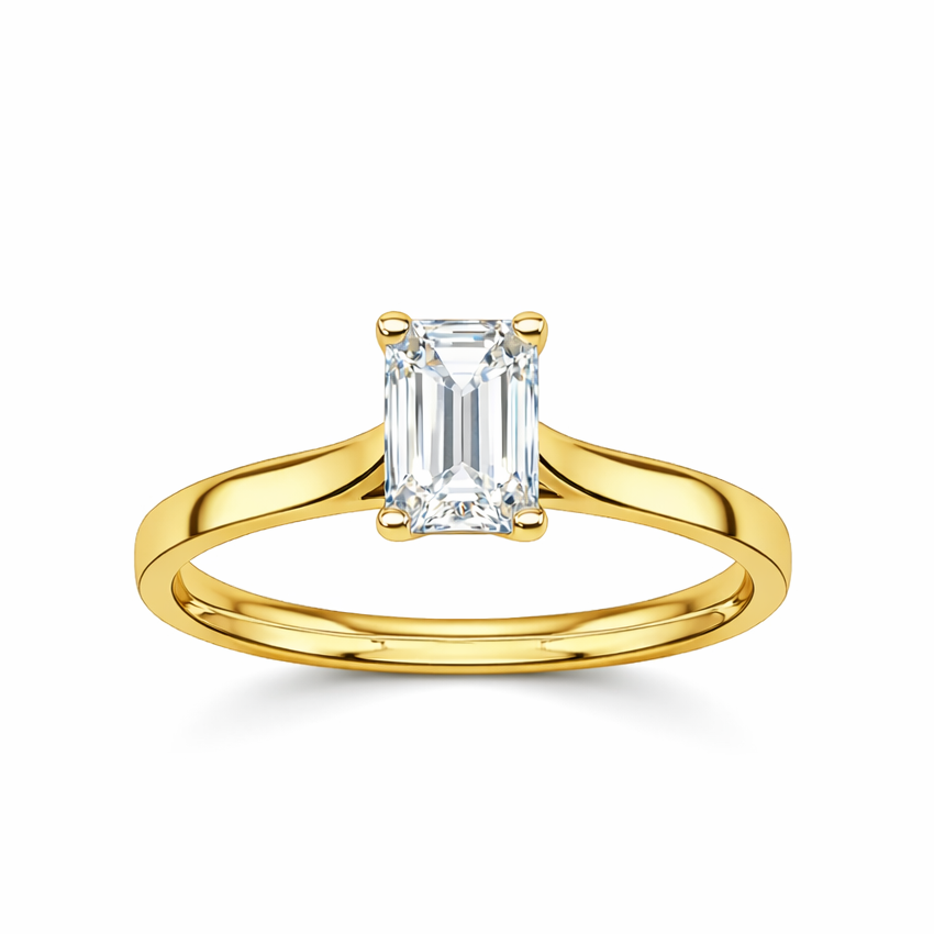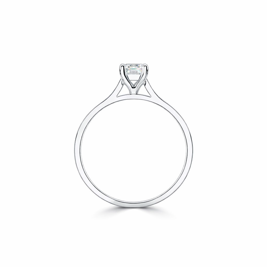 En väldigt vacker och tidlös ring i återvunnet guld eller platina med en smaragdslipad diamant.